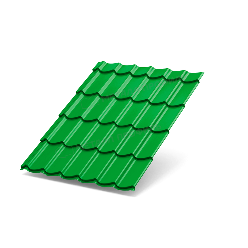 Металлочерепица в ярком желто-зеленом оттенке RAL 6018 представляет собой надежный кровельный материал от известного производителя. С толщиной металла 0,5 мм и специальным покрытием, она сочетает эстетику и долговечность, идеально подходя для современных крыш. Этот продукт обеспечивает отличную защиту от погодных воздействий, сохраняя привлекательный вид на долгие годы.