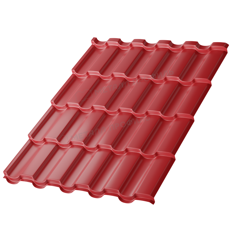 Одно из ключевых преимуществ — высокая коррозионная стойкость, продлевающая срок службы до 30 лет. Матовая поверхность не бликует на солнце, снижая нагрев крыши, а цвет RAL 3011 маскирует загрязнения. Легкий вес (около 4,5 кг/м²) упрощает транспортировку и монтаж, снижая затраты на строительство. Экологичность материала подтверждается отсутствием вредных веществ в составе.
