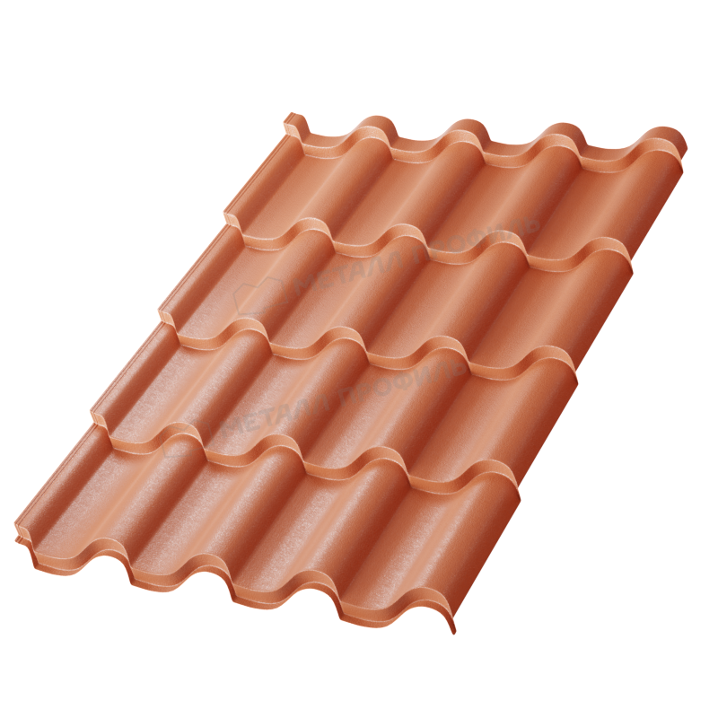 Металлочерепица Монтерроса-ML от Металл-Профиль представляет собой надежный кровельный материал толщиной 0,5 мм с инновационным покрытием VikingMP® E в оттенке RAL 8004 Коричневая медь. Этот продукт сочетает эстетику классической черепицы с прочностью металла, обеспечивая долговечность и привлекательный внешний вид для крыш жилых и коммерческих зданий.